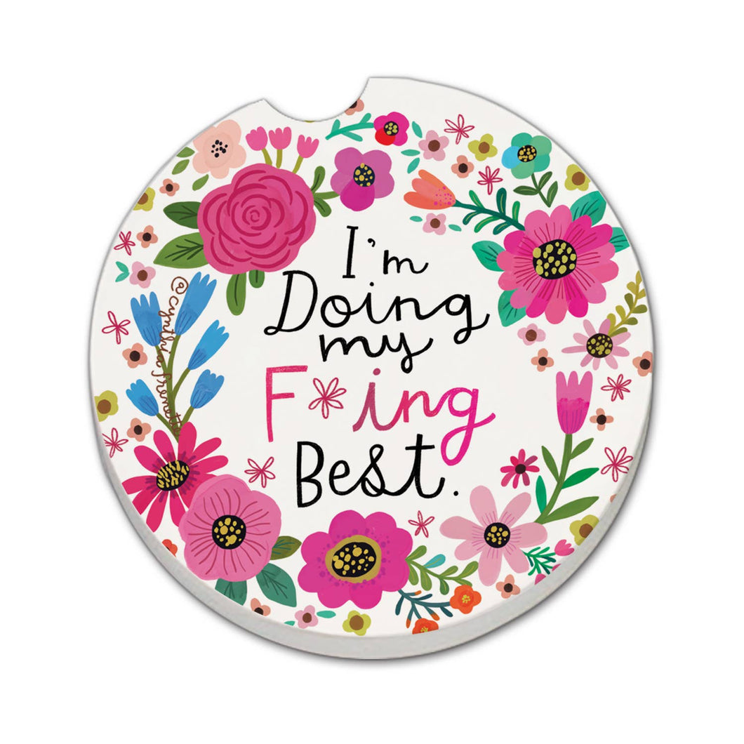 Manufactured in the USA of absorbent stone to absorb excess condensation from beverages. Assists to keep your car's cup holder clean and dry. Convenient notch on side of the car coaster, makes it easy to remove while detailing your car. Beautiful artwork adds distinction to your vehicle’s interior. Clean the coaster by wiping clean with damp cloth and mild detergent. Measures 2.6 inches round and fits most vehicle cup holders. Find that special design to complete your vehicle's personality. Family and Friends will love receiving these long lasting, attractive Coasters for any occasion of the year.